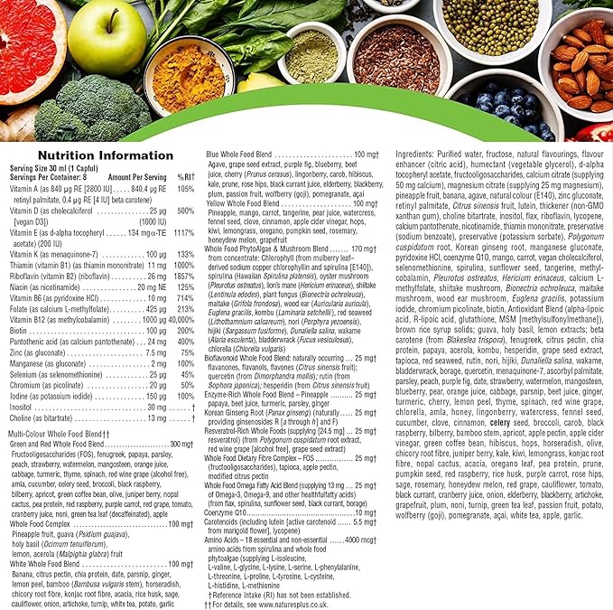Natures Plus Source of Life Gold Multivitamin Liquid - 8 oz - with Vitamins D3, B12 & K2 - Blood, Bone & Immune Support - Vegetarian & Gluten Free - 8 Servings