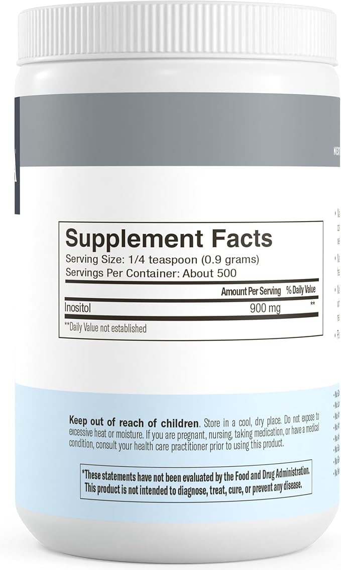 - PURE INOSITOL POWDER - 900 mg serving size inositol from myo-inositol. Our pure inositol supplement contains no D-chiro inositol source. Nutritionists recommend it for relaxation, falling asleep more easily, improving mood.*