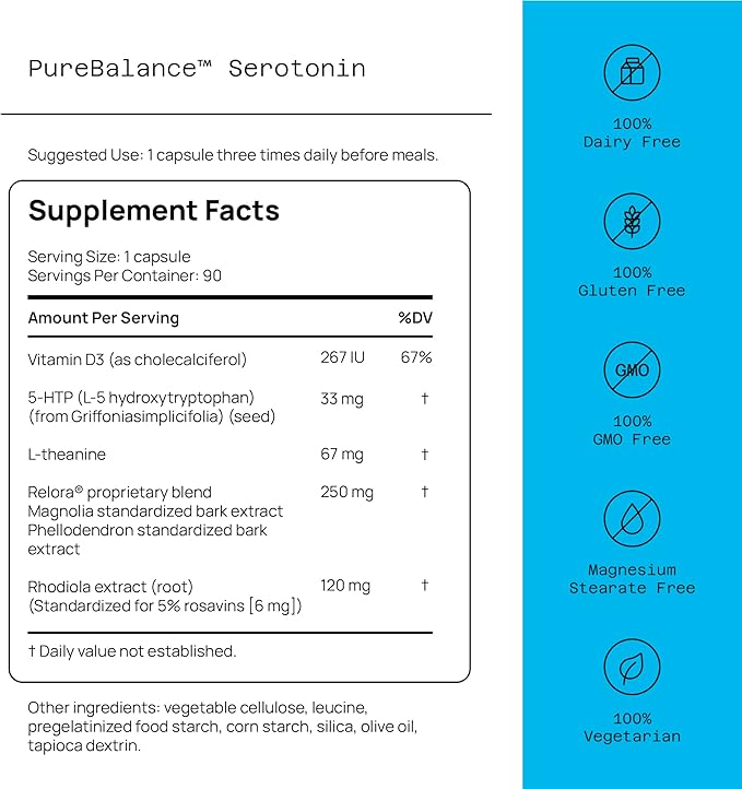 - BALANCES SEROTONIN AND CORTISOL LEVELS: PureBalance Serotonin provides the raw material your body needs to make serotonin to bring you one step closer to a healthier you.