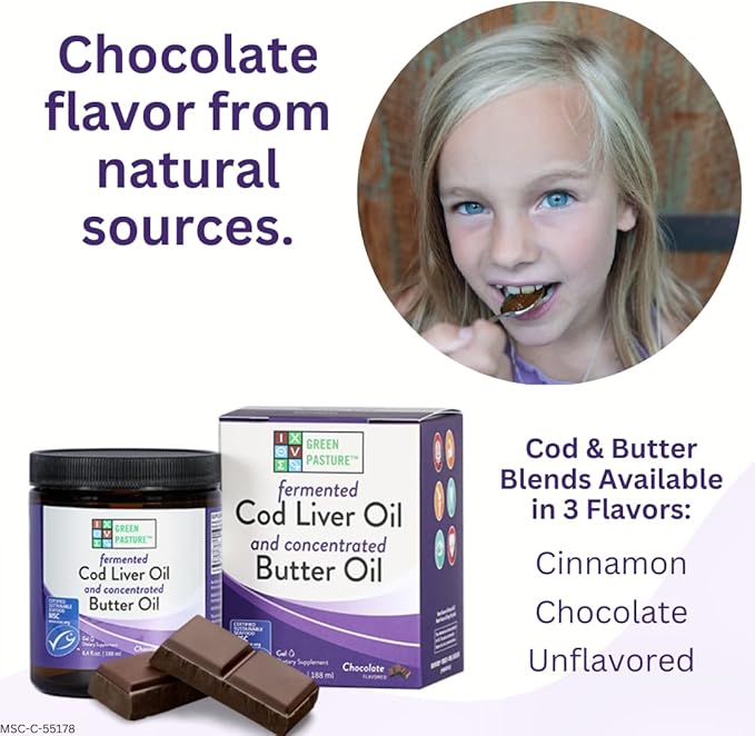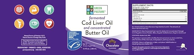 Green Pasture Butter Oil/Fermented Cod Liver Oil Blended Gel - 6.4 oz.- Vitamin A & D- EPA - DHA - Omega Fatty Acids (Chocolate)