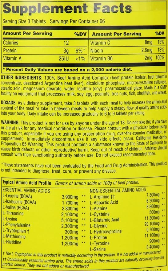 Universal Nutrition - 100% Beef Aminos -3g of Beef Protein Isolate for Recovery and Growth - 200 Tabs