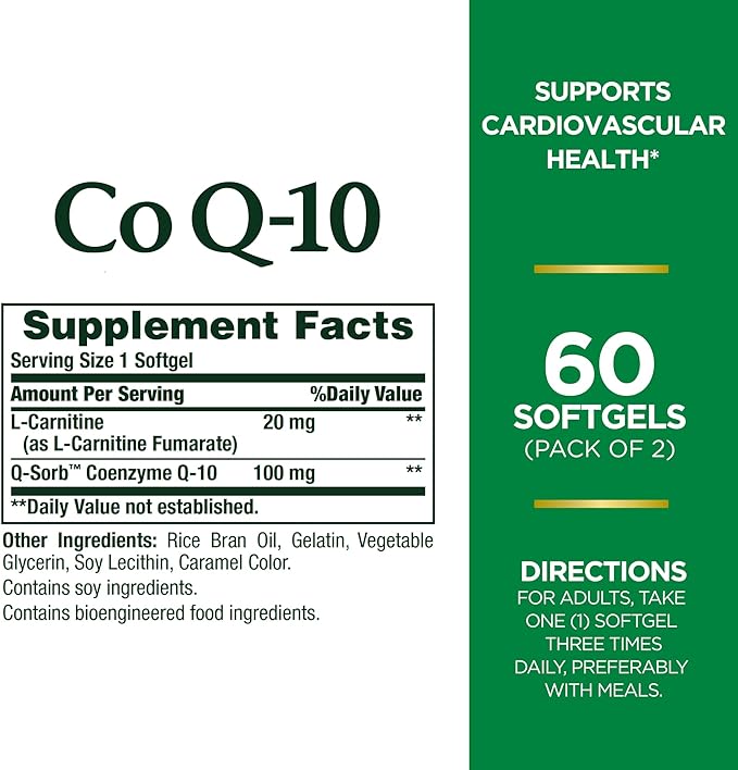 CoQ10 by Nature's Bounty, Dietary Supplement, Supports Heart Health, 100mg Plus L-Carnitine, Twin Pack, 120 Softgels