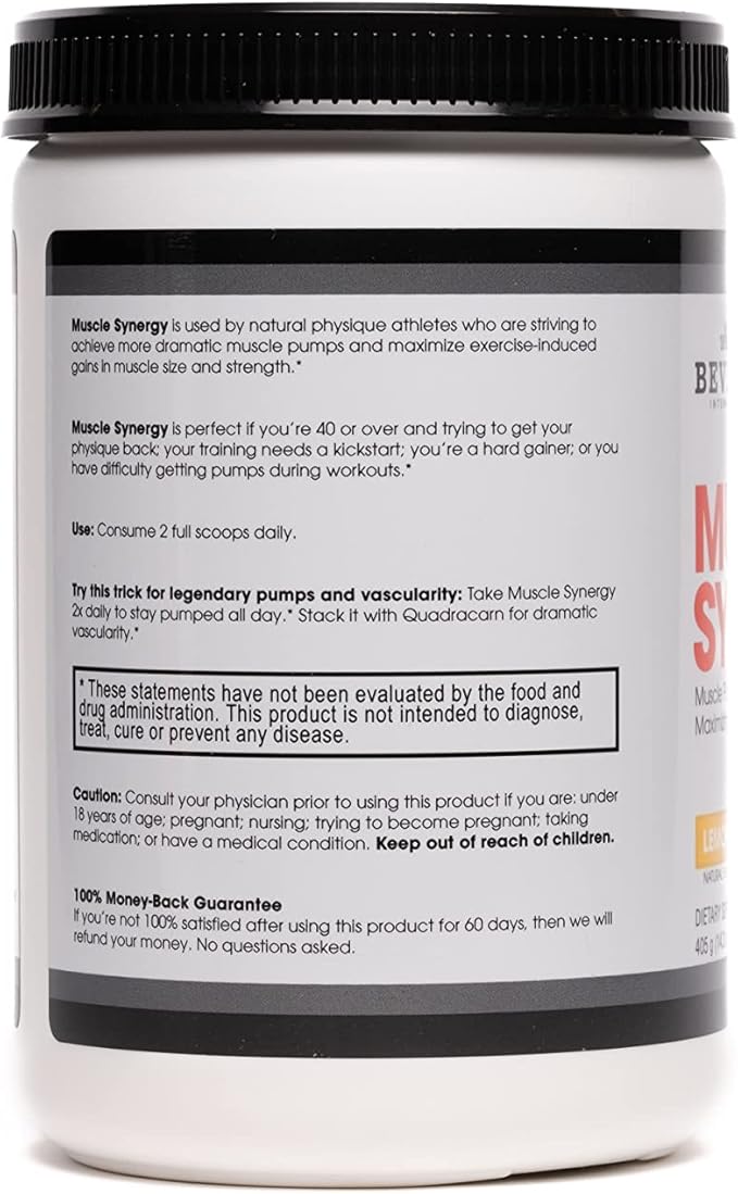 Beverly International Muscle Synergy 405g (Lemon Powder 14.3 oz) Dramatic Muscle Pump, Size & Strength Maximizing Drink Mix w/HMB. L-Arginine, L-Citrulline, Creatine Monohydrate, L-Ornithine