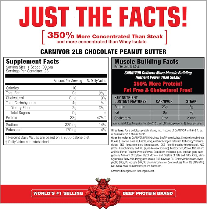 - 23g of muscle building USDA approved beef protein, without the unwanted fat or cholesterol
