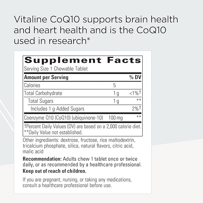 Integrative Therapeutics Vitaline CoQ10 100 mg - Supports Brain and Heart Health* - Dairy Free - Vegan - Tropical Fruit Flavored - 30 Chewable Wafers