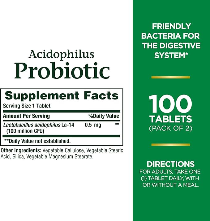 Nature's Bounty Acidophilus Probiotic, Daily Probiotic Supplement, Supports Digestive Health, Twin Pack, 100 Count (Pack of 2)