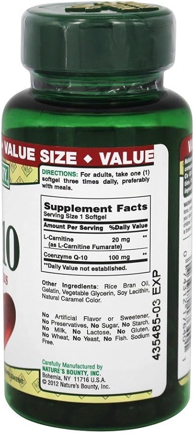 CoQ10 by Nature's Bounty, Dietary Supplement, Supports Heart Health, 100mg Plus L-Carnitine, 60 Softgels