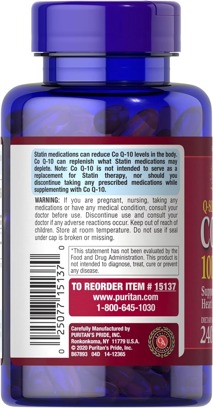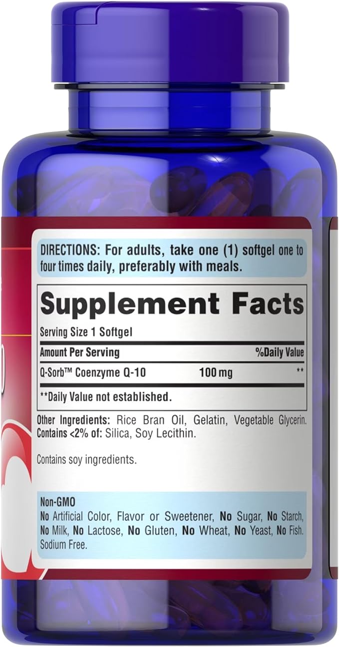 Puritan's Pride Coenzyme CoQ10 100mg, Dietary Supplement for Heart Health, Blood Pressure, Oral Gum Health, and Healthy Aging Support, 60 Day Supply, 240 Rapid Release Softgels