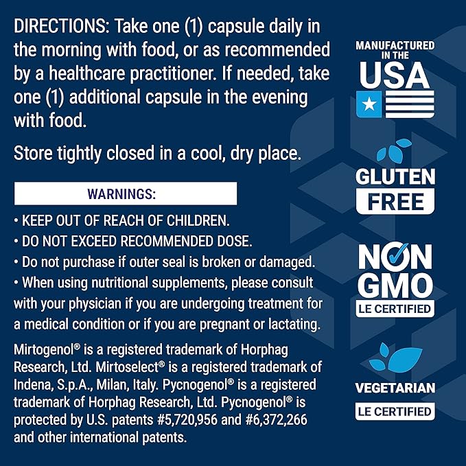 - Special Ingredients : Mirtogenol® [Mirtoselect® European Bilberry (Vaccinium myrtillus L.) extract (fruit) and Pycnogenol® Dried French Maritime Pine (Pinus pinaster) extract (bark)] Mirtogenol® [Mirtoselect® European Bilberry (Vaccinium myrtillus L.) extract (fruit) and Pycnogenol® Dried French Maritime Pine (Pinus pi… See more