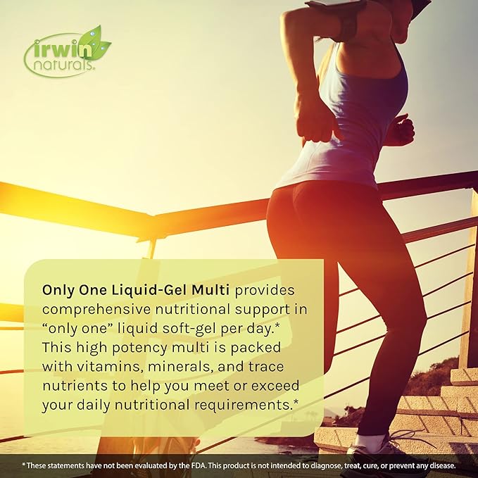Irwin Naturals Only One Liquid-Gel Multi with Iron - 60 Liquid Softgels - Daily Essential Vitamins, Minerals, Antioxidants, Omega-3s & Green Super Foods