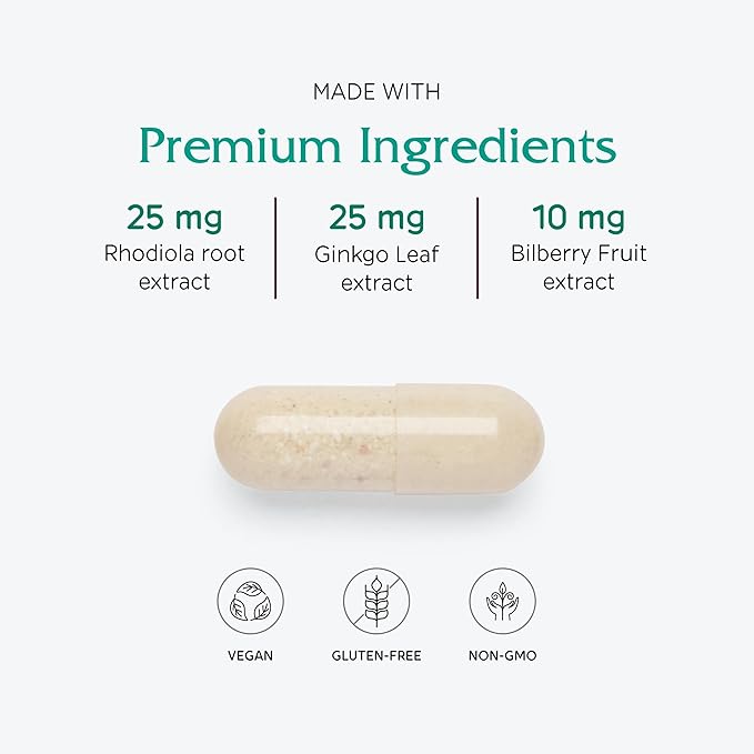 - Botanical support from: Rhodiola, Ginkgo and Bilberry fruit. Additional antioxidant support with: CoQ10 and Lutein. The citrate/malate forms of calcium optimize calcium absorption as we age