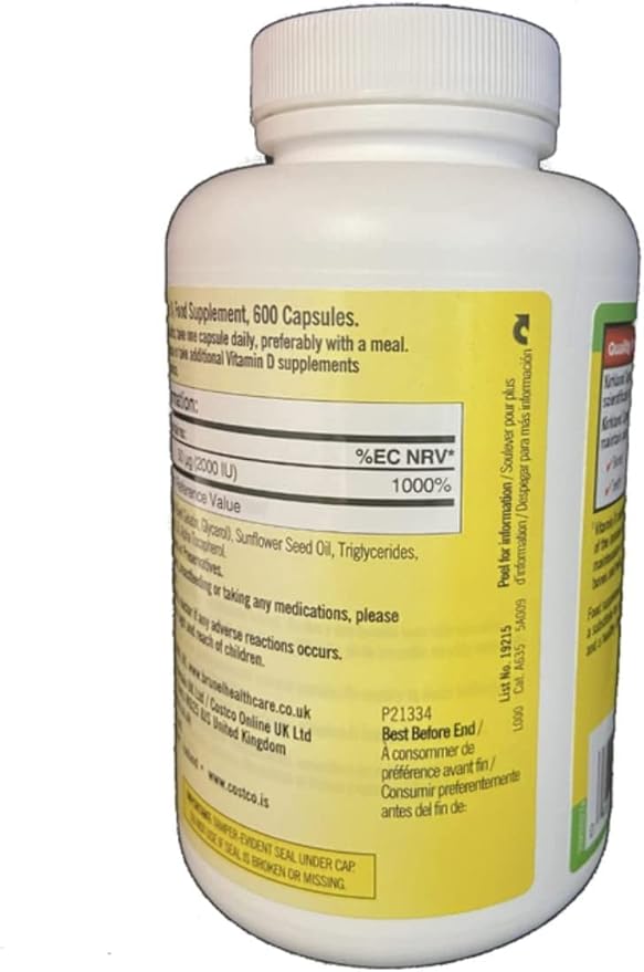 Kirkland Maximum Strength Vitamin D3 600 Softgels (Pack of 2)
