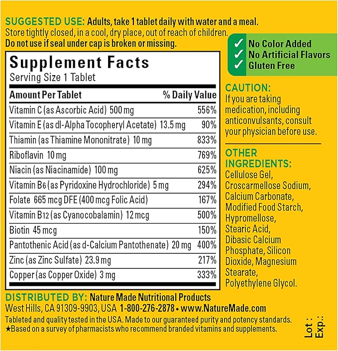 - Immune support supplement: contains one 75 count bottle of Nature Made Stress B Complex with Vitamin C and Zinc Tablets for a 75-day supply