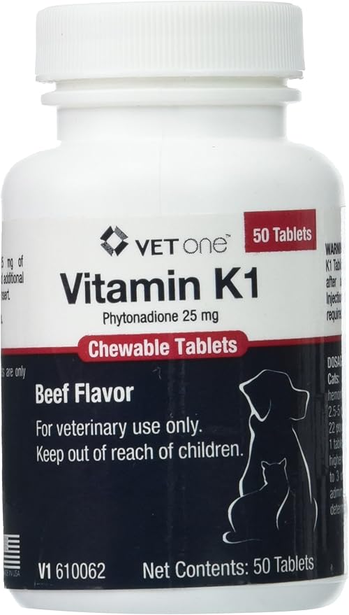 - Chewable Tablets - Vet One's chewable vitamin K tablets contains 50 chewable pet vitamins, each containing 25mg of Phytonadione.