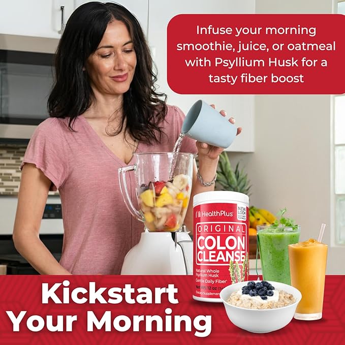 Health Plus Original Colon Cleanse, 12 oz Powder, 48 Servings - Natural Detox, Digestive Constipation Relief, Daily Fiber, Contains Psyllium Husk