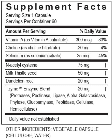 - Primary Supplement Type : Vitamin A, Selenium, Dandelion Root, Milk Thistle Seed, Tzyme Blend, Choline