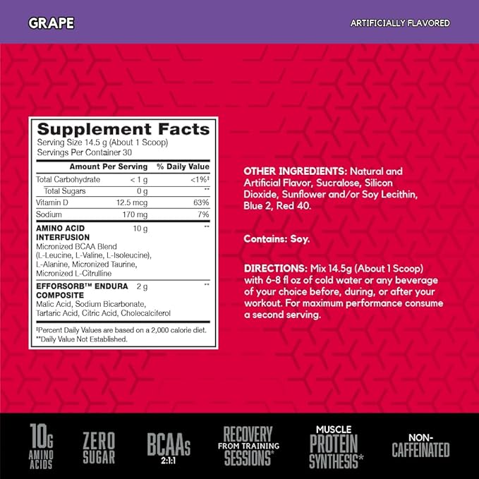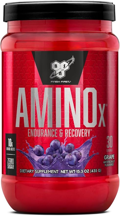 BSN Amino X Muscle Recovery & Endurance Powder with BCAAs, Intra Workout Support, 10 Grams of Amino Acids, Keto Friendly, Caffeine Free, Flavor: Grape, 30 Servings (Packaging May Vary)