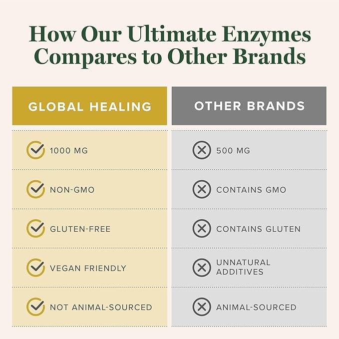 Global Healing Ultimate Enzymes - Systemic & Digestive Enzymes Supplement for Healthy Digestion, Immune System Boost and Natural Gut Health, Digestive Enzyme for Women and Men, Lipase (120 Capsules)