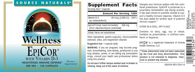 Source Naturals Wellness EpiCor with Vitamin D-3 for Heightened Immune Defense* - 120 Capsules