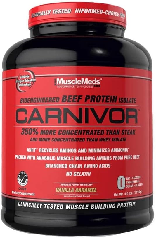 MuscleMeds Carnivor Bioengineered Beef Protein Isolate, Vanilla Caramel, 3.9 Pound