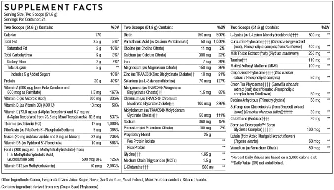 - Powerhouse Nutrition: All-in-one daily protein, multi-vitamin/mineral supplement with added antioxidant support