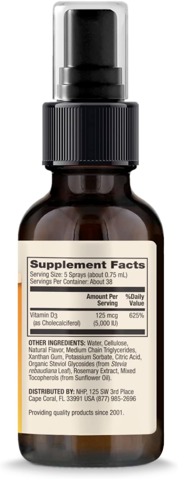 - Just 5 sprays of this refreshing natural, orange-flavored mist supplies 5,000 IU of Vitamin D3 to your system*