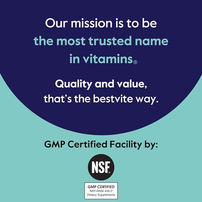 - NSF GMP CERTIFIED: Bestvite’s facility is NSF/ANSI 455-2 Dietary Supplements Good Manufacturing Practice (GMP) certified. Earning GMP certification from NSF verifies that a manufacturing facility has the proper methods, equipment, facilities, and controls in place to produce dietary supplement products.