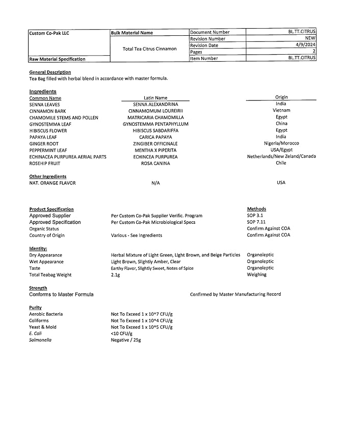 - Tea Bags - Promote a healthy gut so good bacteria can flourish. Diet Tea combines the effects of cinnamon herbal tea and constipation tea in 1 tasty Citrus Cinnamon tea blend. Start your day fresh and rejuvenated with our everyday detox tea, designed to cleanse your system and promote overall well-being.