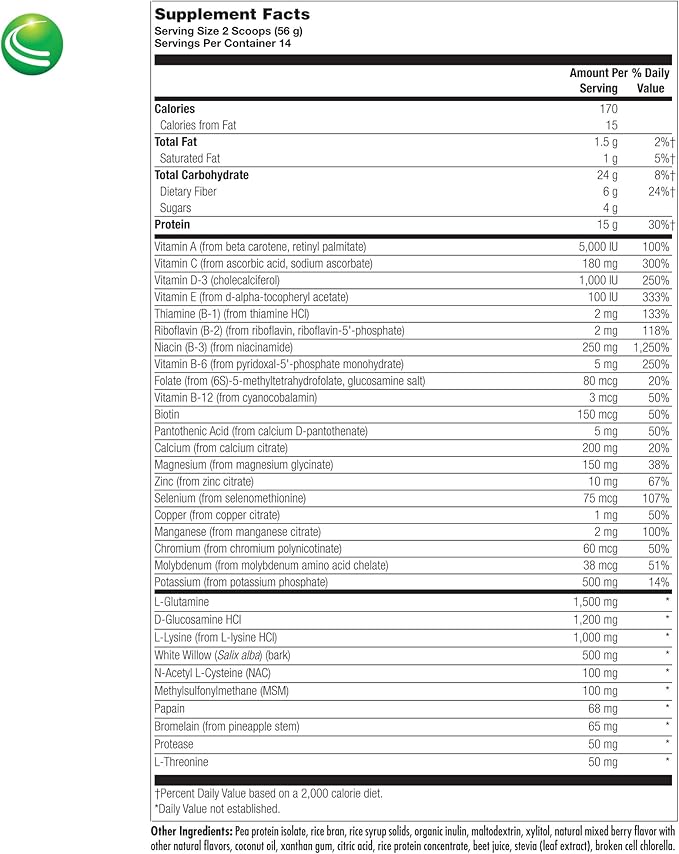 Nutra Biogenesis - BioInflaMax Berry Powder - Pea, Chlorella & Rice Protein Plus Multivitamin/Minerals, White Willow Bark & Proteolytic Enzymes - Gluten Free - 1.7 Pounds