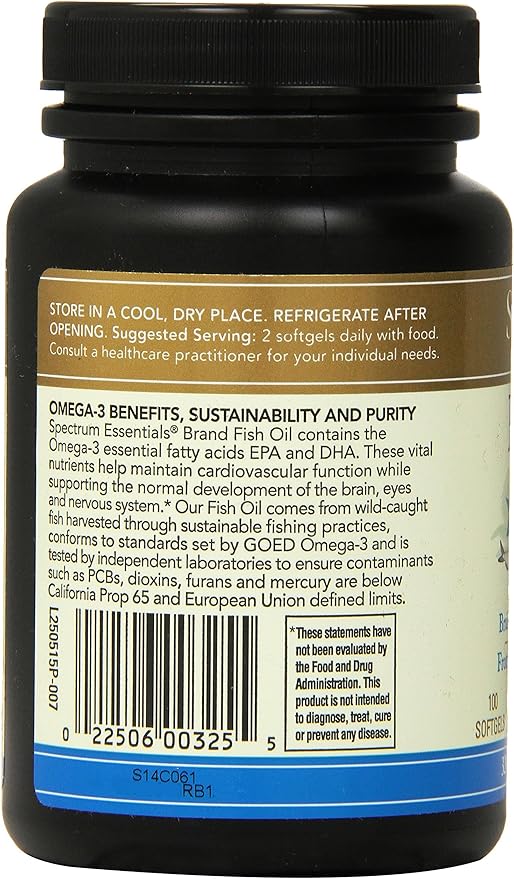 Spectrum Essentials Softgels, Fish Oil Omega-3, 1000 mg, 100 Count