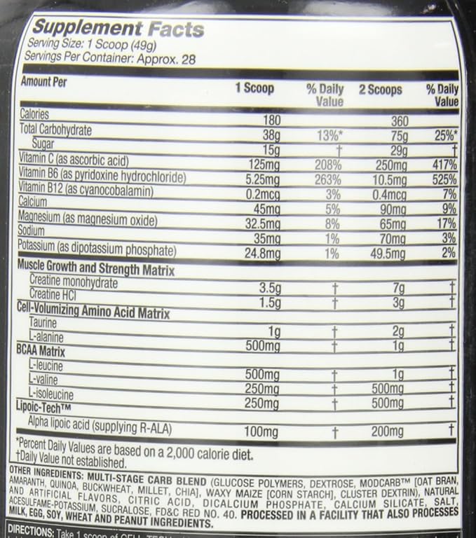 - CREATINE MONOHYDRATE – Cell-Tech is the best for a reason. Specifically formulated for those looking to pack on lean muscle, Cell-Tech is a scientifically engineered, 3rd gen creatine formula featuring a clinically validated blend of creatine plus carbs