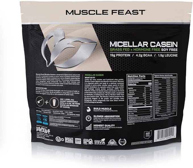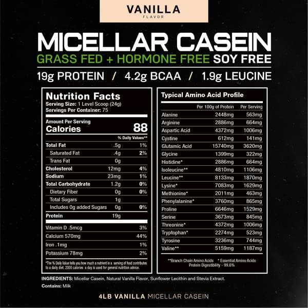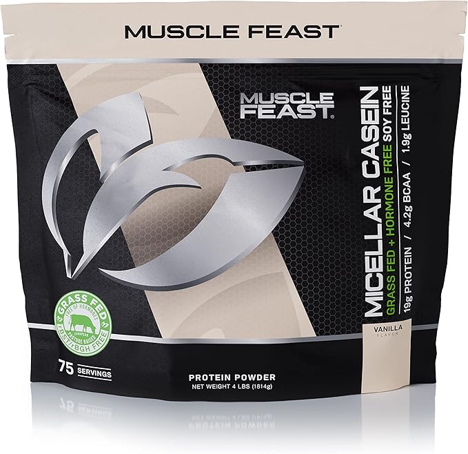 Muscle Feast Pasture Raised + Grass Fed Micellar Casein + RBST/rBGH Free, Vanilla, 4lb