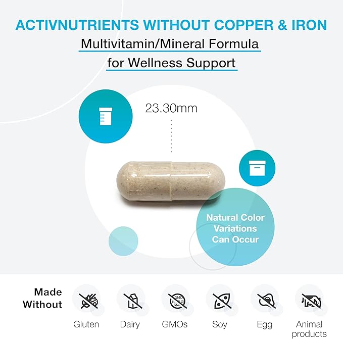 XYMOGEN ActivNutrients Without Copper & Iron - Multimineral Multivitamin for Men + Women with Folate, B12, Zinc and Vitamin C, Beta Carotene, Selenium Supplement - Daily Multivitamin (120 Capsules)