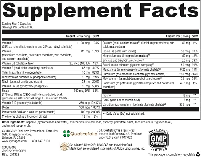 - Multi vitamin formulated to exclude: Wheat, gluten, yeast, soy, dairy products, fish, shellfish, peanuts, tree nuts, egg, ingredients derived from GMOs, and artificial preservatives. XYMOGEN vitamin supplements for men / women and daily vitamin support products are practitioner trusted.*