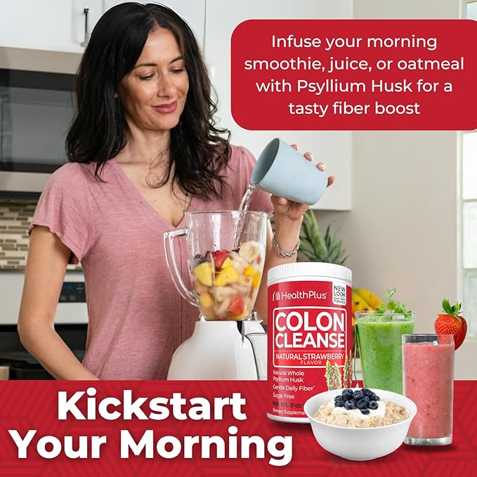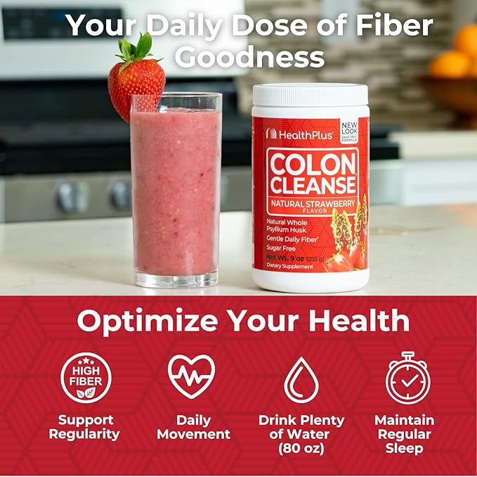 Health Plus Colon Cleanse Digestive Support | Natural Sweetener without Artificial Flavors | Daily Fiber for Toxin Elimination To Reduce Bloating | Strawberry Flavor | 9 Ounces, 36 Servings