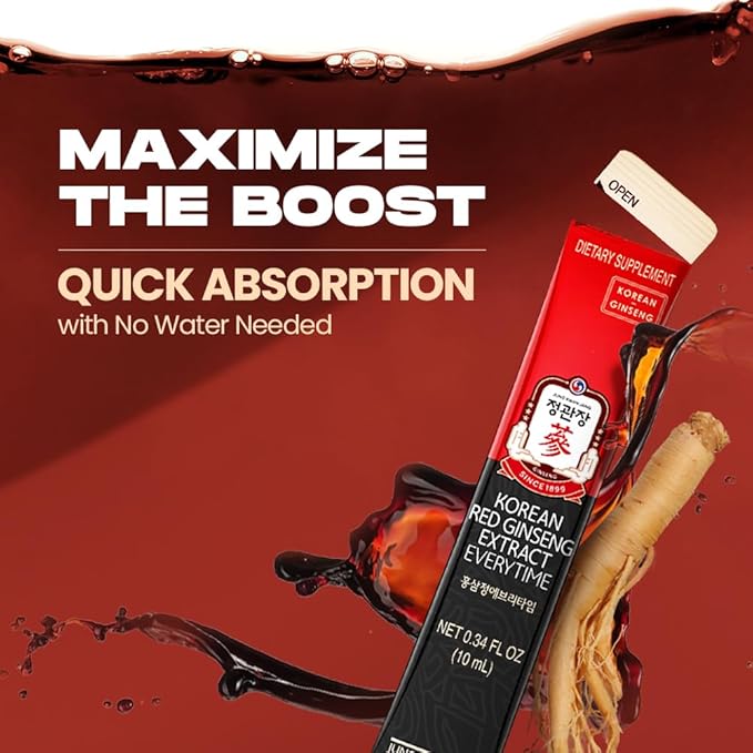 - ONE A DAY : Each stick pack contains the recommended does (3,000 mg) of Korean Red Ginseng Extract. It comes in individually packaged sticks for easy consumption and portability and the convenience of portability makes it even easier to meet your recommended intake