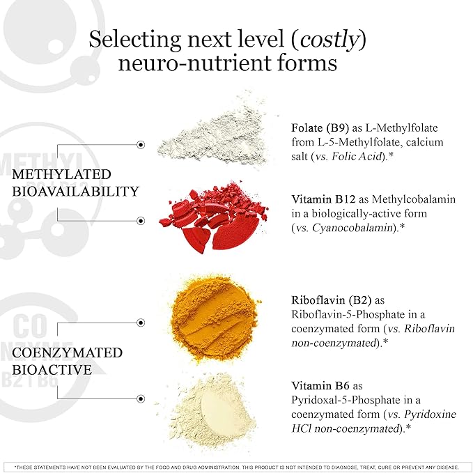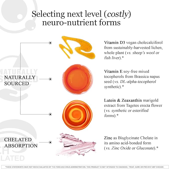 - 1 NUTRIENTS: Selecting next-level neuro-nutrient forms found in top focus pills. At the foundation is the meticulous selection of naturally sourced (Vitamin D3, Vitamin E, Lutein & Zeaxanthin), methylated (B9, B12), chelated (Zinc), coenzymated (B2, B6), and Caffeine-Free, research-backed forms for high absorption and effectiveness.