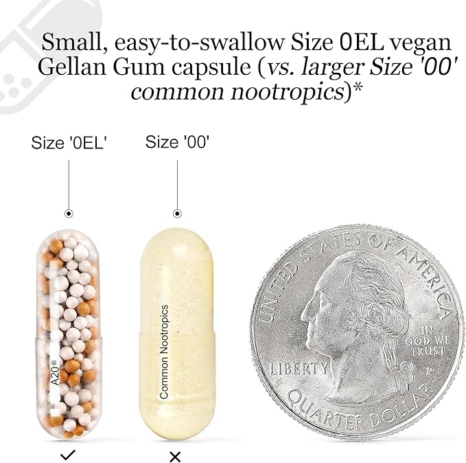 HCF A20 Microbead Brain Supplements for Memory and Focus + Brain Support, Calm, Mood, Alertness, Attention, Vision, Sleep, Immune System, 20 Premium Nootropic Nutrients Multivitamin & 7 Advances® Tech