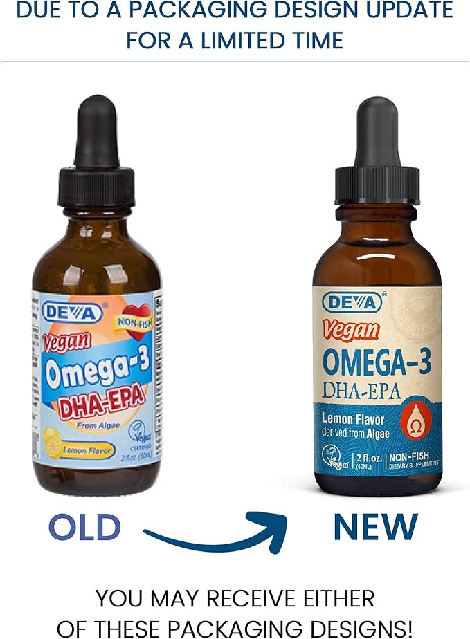 DEVA Vegan Omega-3 Liquid DHA - EPA, Non Fish from Algae, Lemon Flavor, 2 Ounce