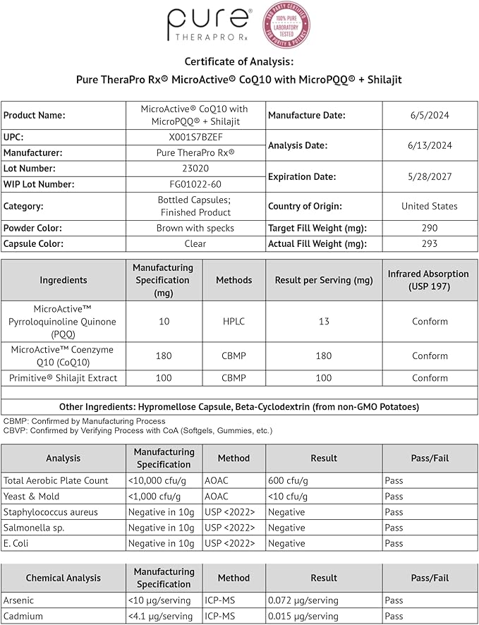 MicroActive CoQ10 Enhanced with MicroPQQ + Shilajit βSustained Releaseβ 60 Veg Caps | Convenient Once a Day Clinical Dose | 2 Month Supply | Vegan | Pharmaceutical Grade