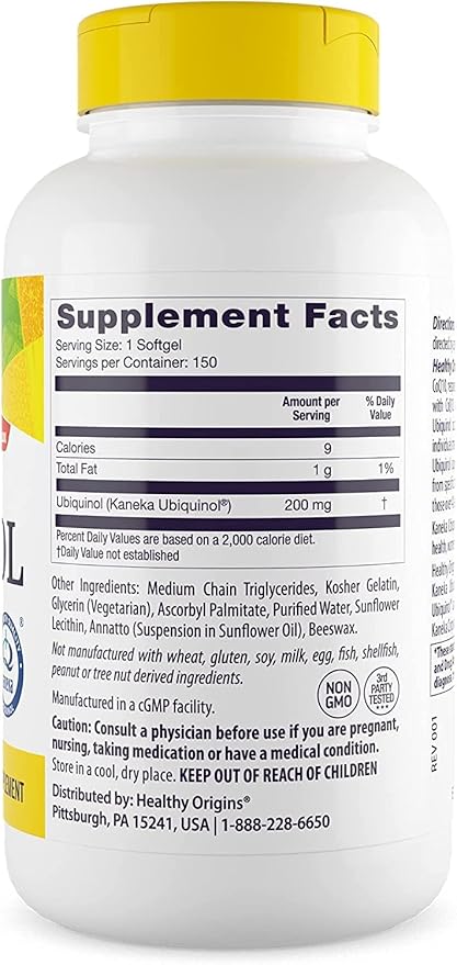 Healthy Origins Ubiquinol (Active Form of CoQ10), 200 mg - Activated Form of CoQ10 - Kaneka Ubiquinol Supplements for Heart Health & Antioxidant Support - Gluten-Free & Non-GMO - 150 Softgels