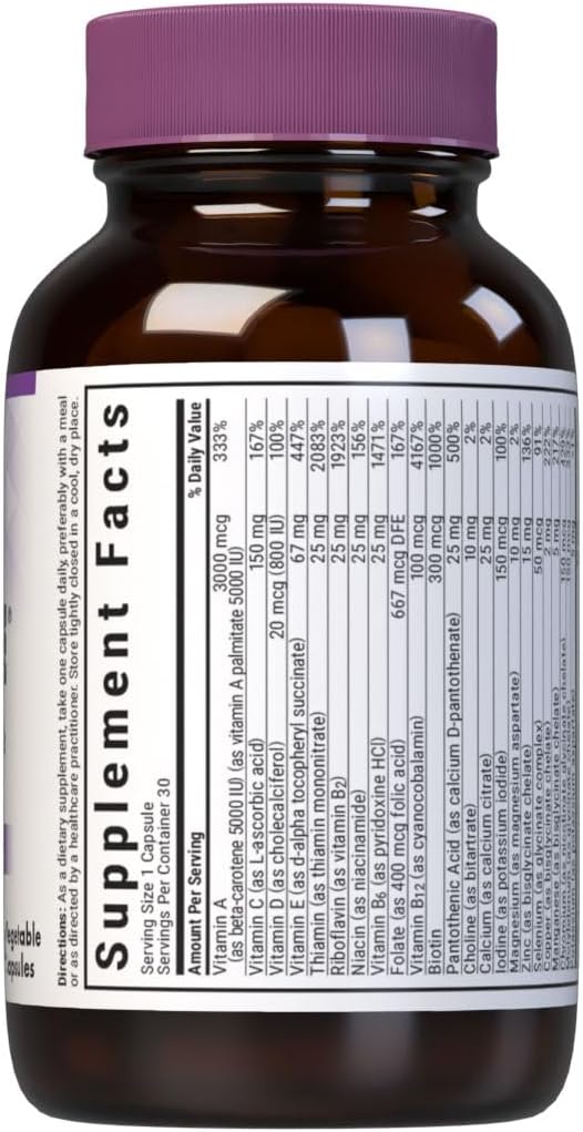 Bluebonnet Nutrition Multi ONE (Iron-Free), Daily Nutritional Support*, Kosher Certified, Gluten-Free, Dairy-Free, Vegetarian Friendly, 30 Vegetable Capsules, 30 Servings