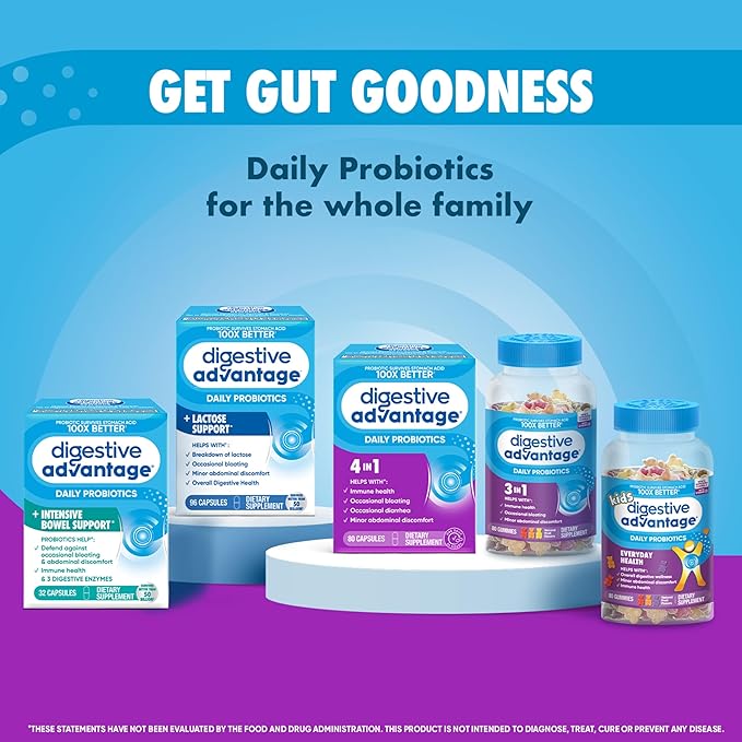 - SCHIFF DIGESTIVE ADVANTAGE PROBIOTIC: Digestive Advantage prebiotic and probiotic fiber gummies, probiotic pills, probiotic gummies, and kids gummies are designed to target the source and support gut health for men and women.*