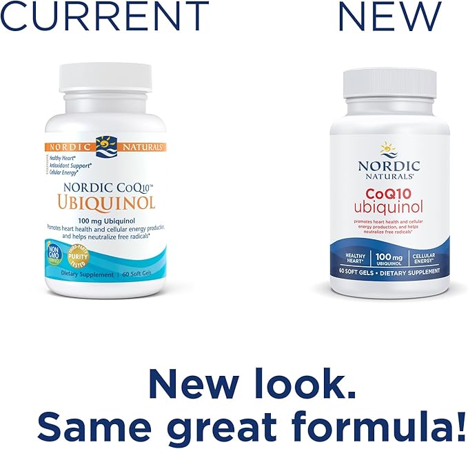 Nordic Naturals Nordic CoQ10 Ubiquinol - 60 Mini Soft Gels - 100 mg Coenzyme Q10 (CoQ10) Ubiquinol - Heart & Brain Health, Cellular Energy Production, Antioxidant Support - Non-GMO - 60 Servings