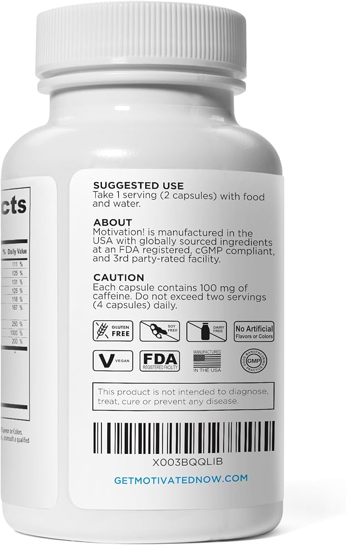 - Includes 200mg of caffeine per serving (two capsules), similar to most energy shots, at only a small fraction of the cost.
