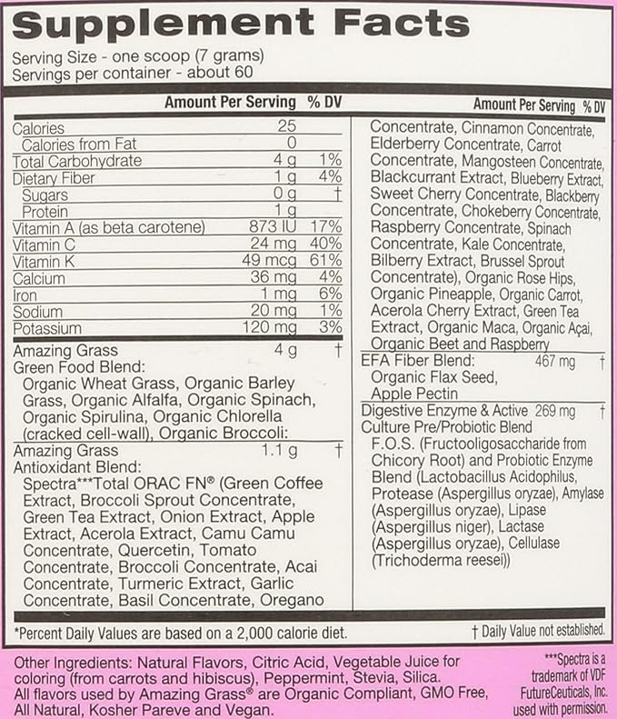 Amazing Grass Greens Superfood Antioxidant: Greens Powder with Organic Spirulina, Beet Root Powder, Elderberry & Probiotics, Sweet Berry, 60 Servings (Packaging May Vary)