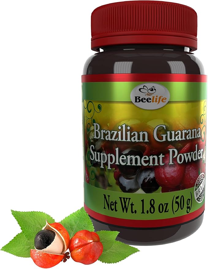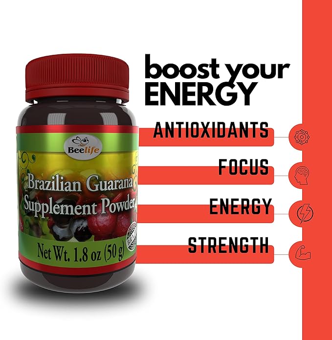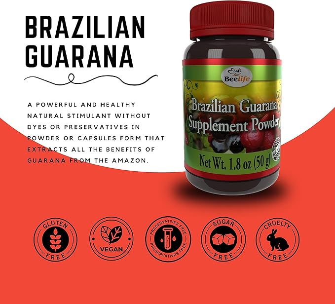 Beelife Brazilian Guarana Powder - Natural Caffeine Supplements from Brazil - Energy & Mental Focus, Muscle Strength Support - Zero Gluten, No Sugar Vegan Pre Workout for Men & Women - 50g
