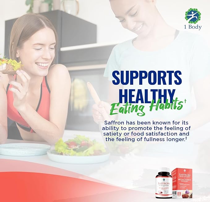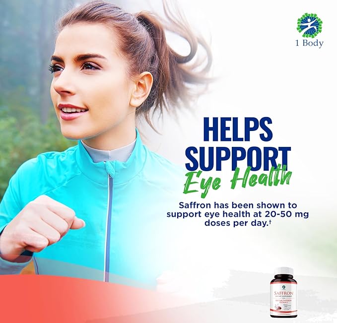 • CAFFEINE FREE: Unlike traditional supplements, 1 Body Saffron 8825 does not contain any stimulants. Each capsule has 88.5 mg of the best Saffron available – Safranal.