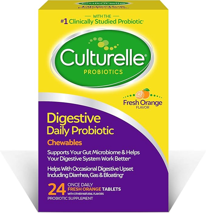 - PROBIOTIC FOR DIGESTIVE HEALTH: Culturelle probiotics are naturally sourced with scientifically proven ingredients to keep your digestive system in balance; helps reduce occasional gas, bloating and diarrhea; For daily use, take 1 chewable tablet per day