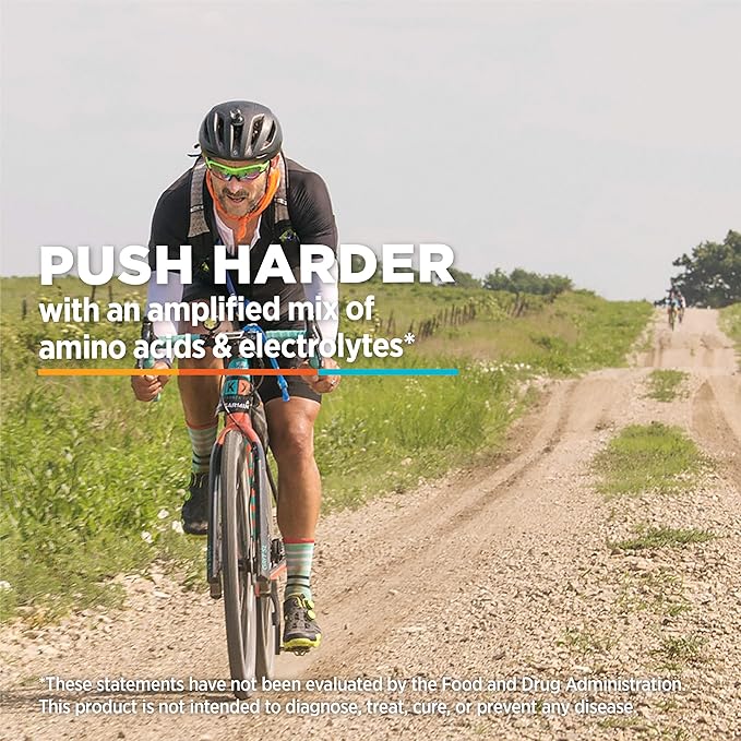 - 1425mg of amino acids help decrease muscle damage and mental fatigue whether running, biking, hiking or skiing